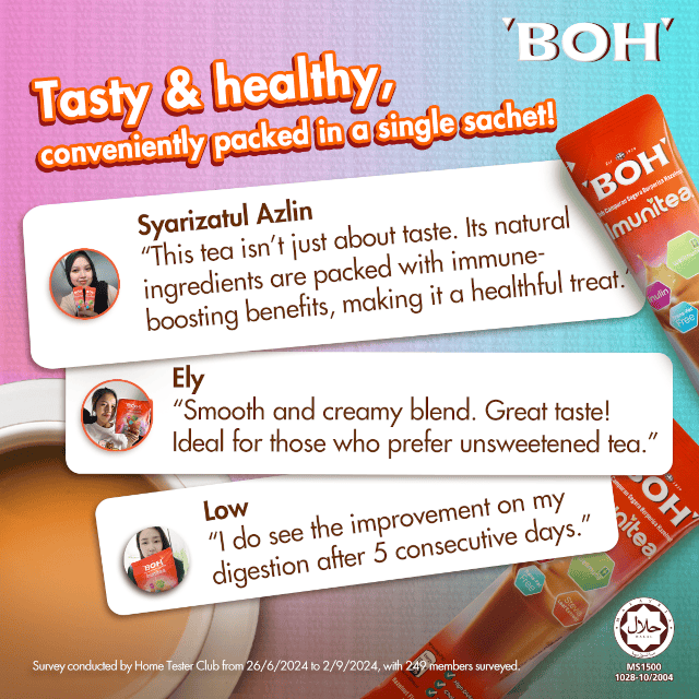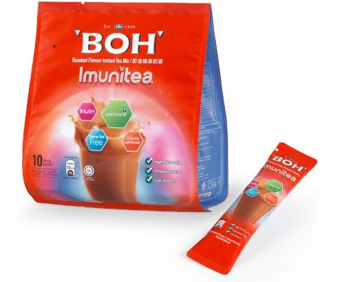 Experience the goodness of BOH Imunitea. Crafted with Wellmune® to help support immune system associated with colds and Inulin for a happy gut and good digestion.