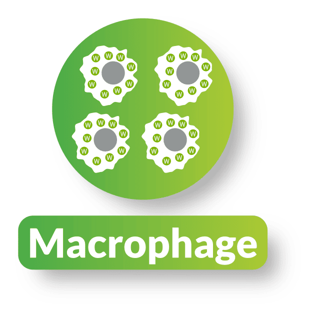 Wellmune® is digested into smaller pieces by Macrophages, the immune cells in the gut.
