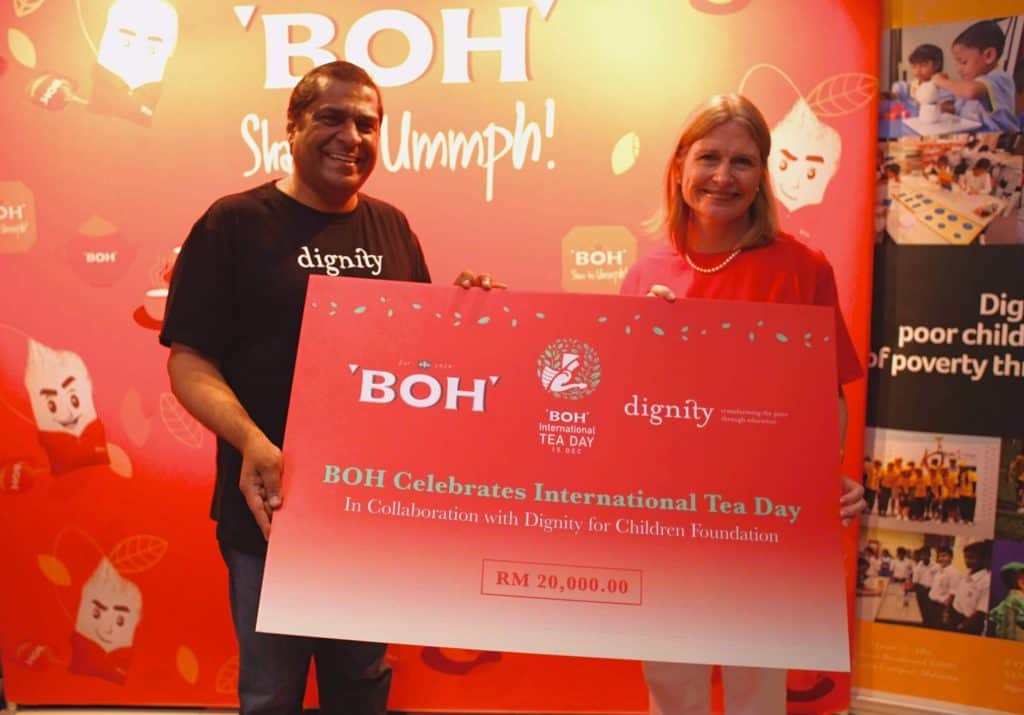 This International Tea Day 2017, BOH contributed towards a sustainable future for underprivileged children by extending financial aid to the Dignity for Children Foundation. A cheque for RM20,000 was presented to the Foundation’s Chairman and Co-Founder, Rev. Elisha Satvinder at the EatXDignity Café, a training on Transformational Enterprises, operated by Dignity.