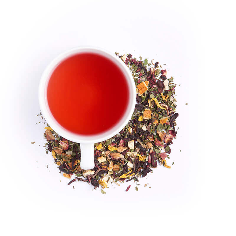 Treat yourself to this zesty brew of hibiscus, apple peel, blackberry leaves, peppermint, and sunflower petals, with gentle fruity hint of apple, strawberry and blackberry for a smooth, comforting and uplifting drink.