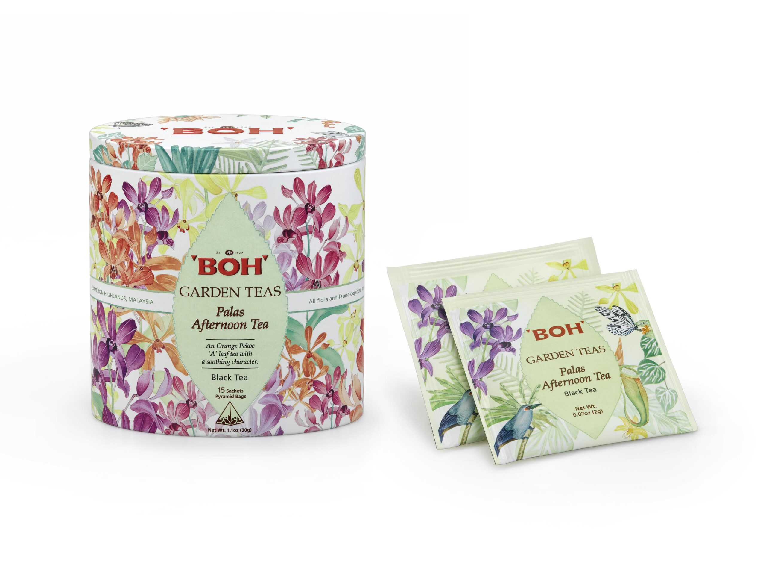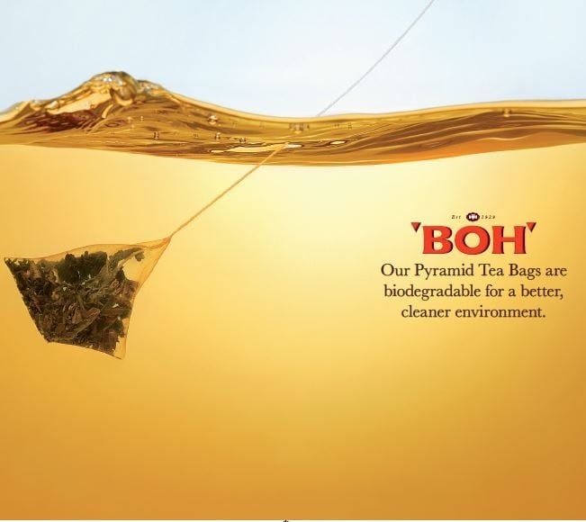 The BOH Garden Teas are presented in environmentally friendly Pyramid Bags, which offer excellent permeability for a better infusion, giving you a fuller, more satisfying brew. The see-through woven mesh filter is derived from cornstarch and can be biodegraded completely when disposed in soil. Enjoy a fuller infusion and a more enhanced drinking experience with Pyramid Bags from BOH.
