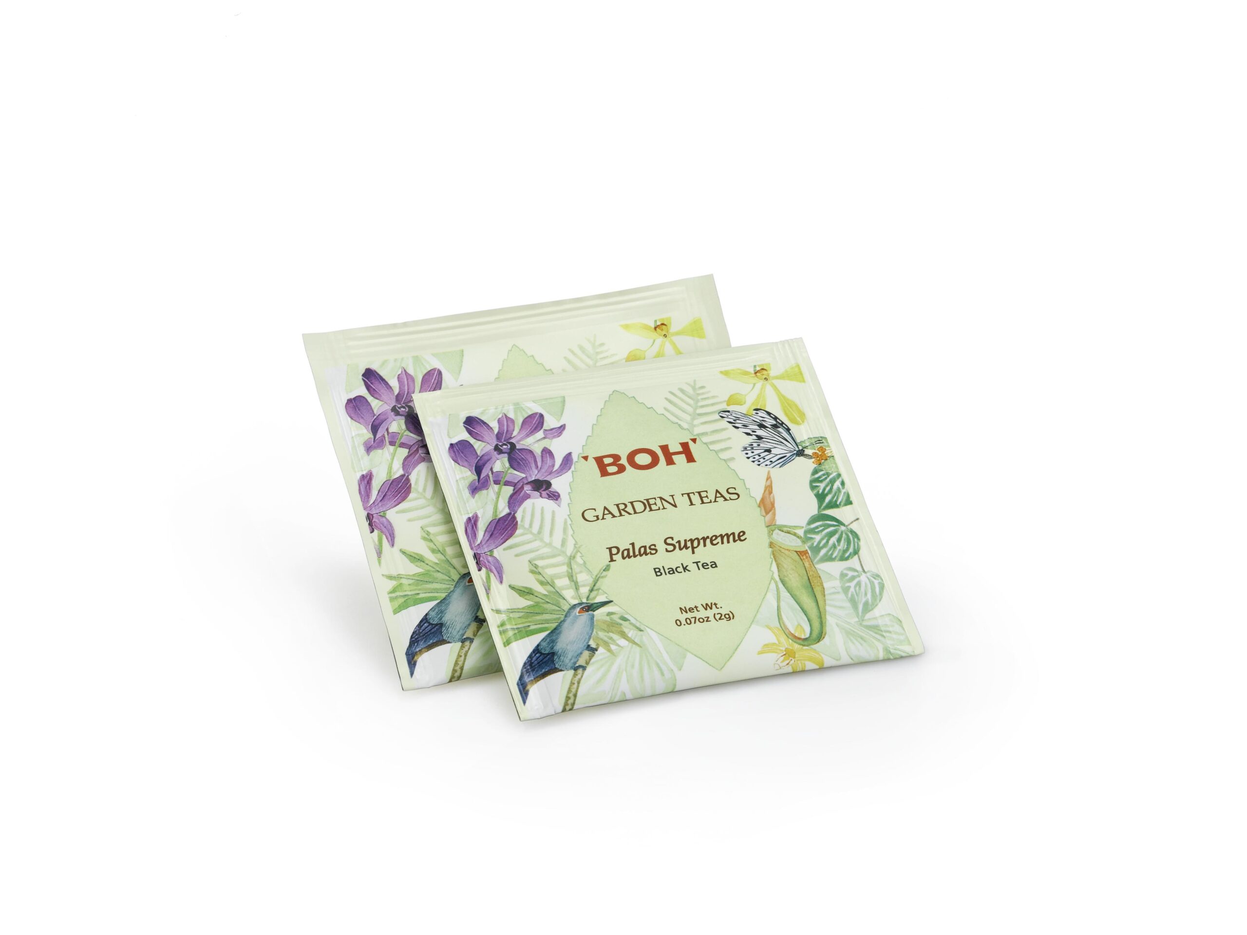 The BOH Garden Teas are presented in environmentally friendly Pyramid Bags, which offer excellent permeability for a better infusion, giving you a fuller, more satisfying brew. The see-through woven mesh filter is derived from cornstarch and can be biodegraded completely when disposed in soil. Enjoy a fuller infusion and a more enhanced drinking experience with Pyramid Bags from BOH.